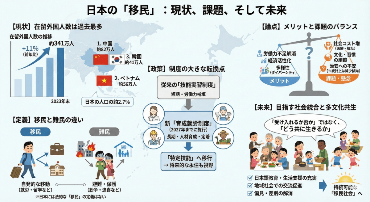 「最近、ニュースで外国人労働者の話題をよく見るけど、日本の移民って今どうなっているの?」
