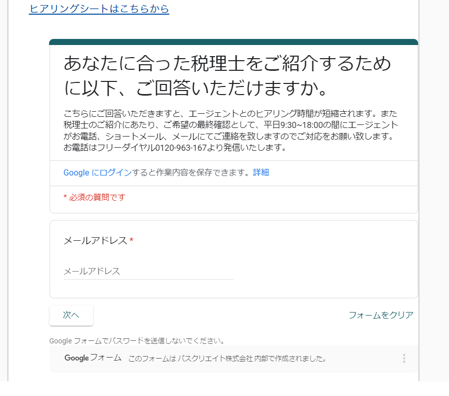 (3)送信後、専任エージェントから連絡が来ます。ヒアリング時間を短縮するために以下のヒアリングシートに記入。