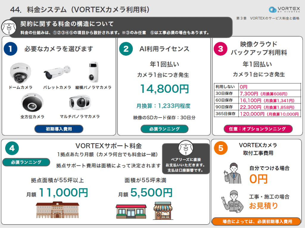 💰 クラウドサービス利用料:録画データの長期保存や遠隔監視が必要な場合は月額数千円~