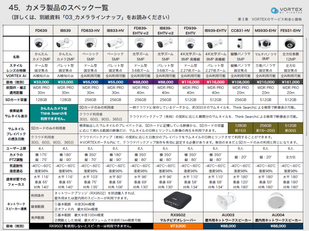 VORTEX・AXIS・HIKVISION・Panasonicの比較表